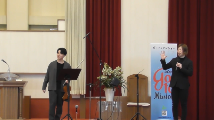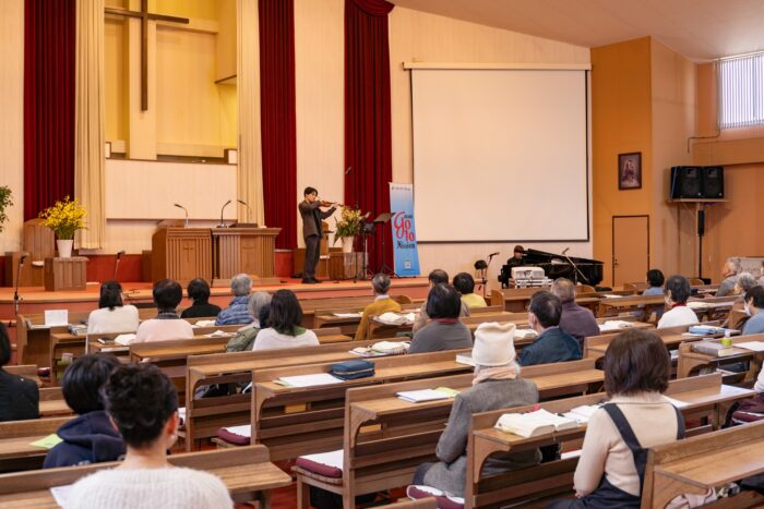 2026年3月15日(日)、リバイバルミッションの平岡 修治 師と、Duo B→Z(Duo B to Z)のお二人(ヴァイオリン:石塚 和基 さんと、ピアノ:冷水 乃栄流 さん)をお迎えして、特別コンサート礼拝が開かれました。