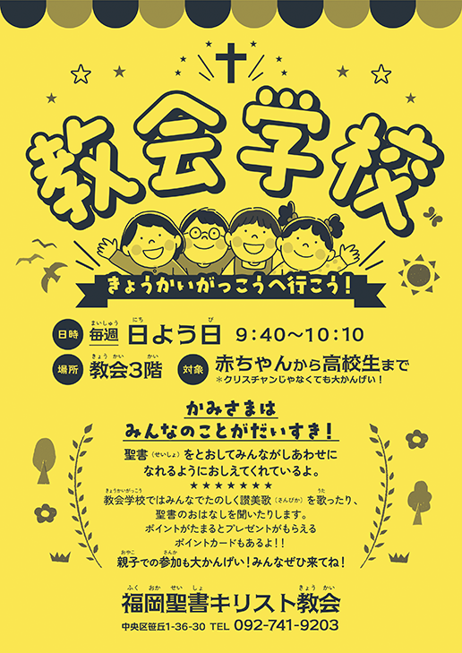 | 教会学校(CS) | 日曜日 9:40~10:10 |